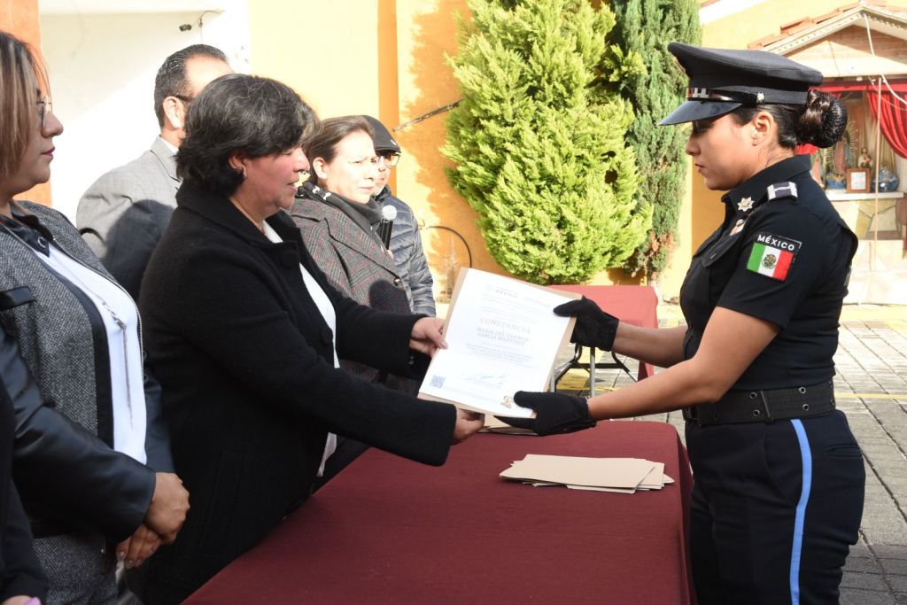 La presidenta municipal de Tlaxcala, Maribel Pérez Arenas, encabezó la entrega de certificados que el Gobierno de México, a través de la Secretaría de Seguridad y Protección Ciudadana, otorgó a elementos policiacos que aprobaron el curso “Registro Nacional de Detenciones e Informe Policial Homologado con perspectiva de género”.