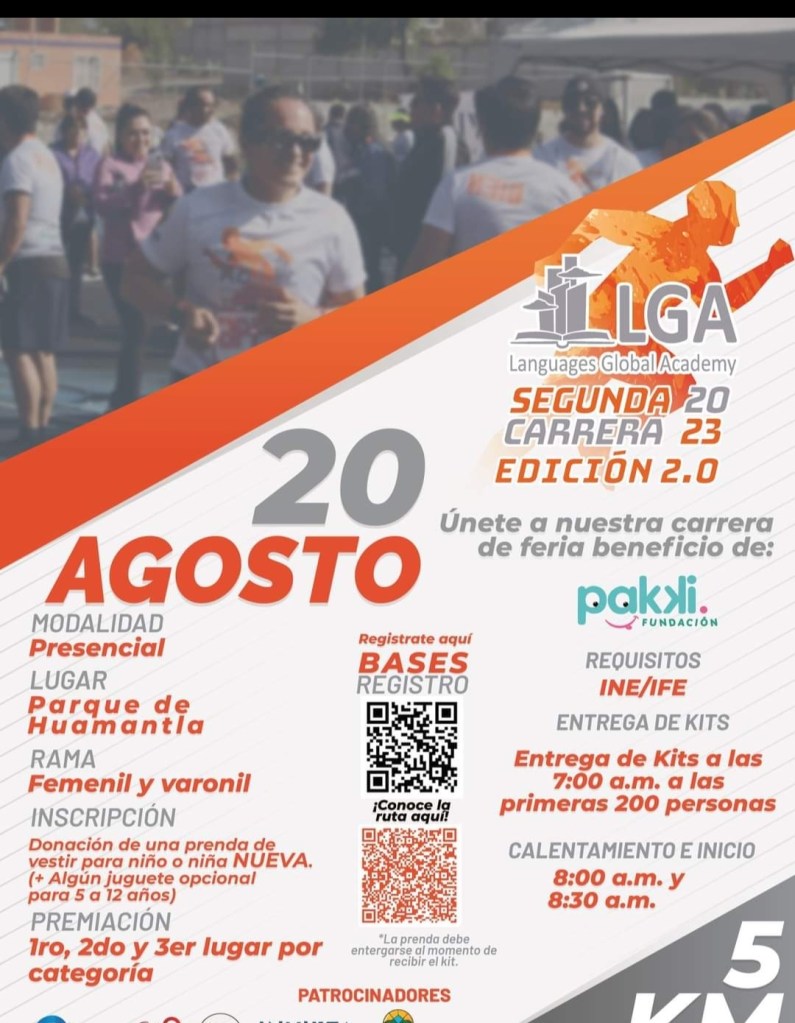En el marco de la Feria Internacional del Arte Efímero y la Dalia, el gobierno municipal de Huamantla que encabeza Salvador Santos Cedillo, invita a las y los huamantlecos a participar en la segunda edición de la carrera Languages Global Academy 2023, el próximo 20 de agosto a las 8:30 de la mañana en el Parque Juárez de la ciudad.