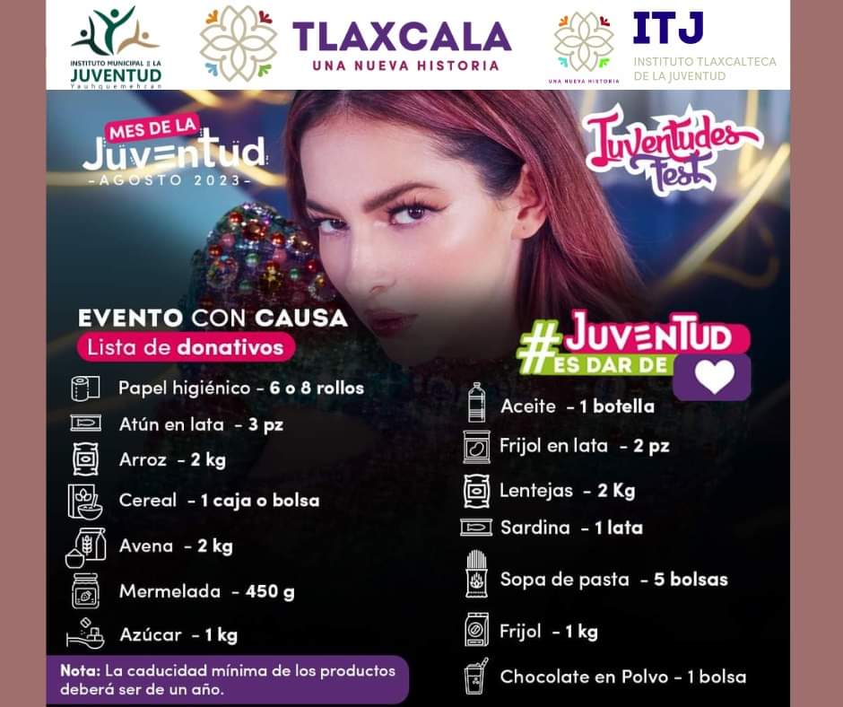 🔸 La dinámica para conseguir tu boleto es recaudar alimentos no perecederos (un kilo de ayuda), por lo que podrás acudir a las instalaciones del Instituto de Municipal de Juventud y Deporte ubicado el interior de Casa de Piedra, Av. Juárez #1 San Dionisio Yauhquemehcan; en un horario de 09:00 am a 5:00 pm.