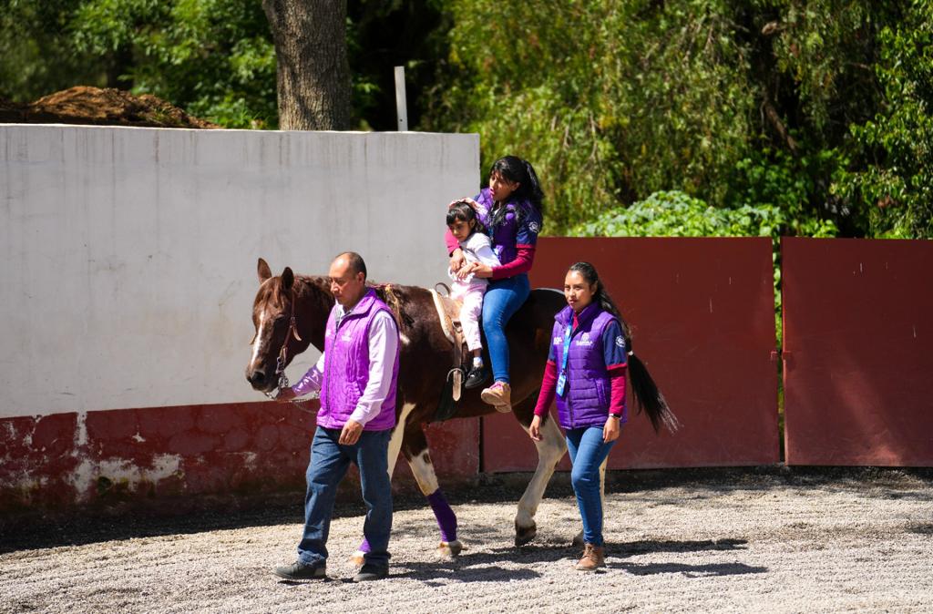 Personal de la Secretaría de Bienestar dio a conocer que en total se han brindado 321 sesiones de equinoterapia, donde infantes realizan ejercicios que utilizan el calor corporal del caballo para ayudar a relajar músculos y ligamentos, así como para mejorar el flujo sanguíneo de los pacientes.