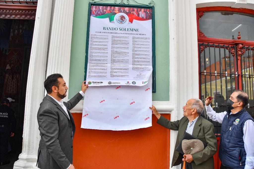 El presidente municipal de Huamantla, Salvador Santos Cedillo, encabezó esta mañana la ceremonia de la Fijación del Bando Solemne del CCXXIII aniversario del inicio de la Independencia de México, donde afirmó sentirse orgulloso de las raíces de ser mexicano, pues esto representa conducirse con firmeza, entereza, valor, autonomía y apego a la legalidad.