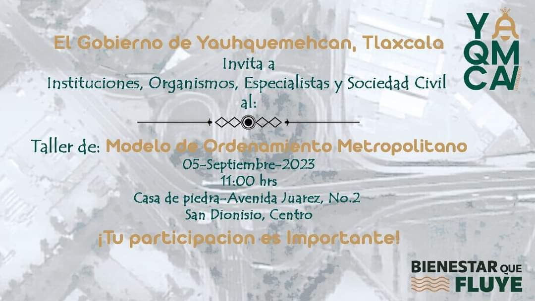 Continuando con los trabajos del programa del Programa Metropolitano de Ordenamiento Territorial y Desarrollo Urbano Tlaxcala-Apizaco. Yauhquemehcan será el anfitrión, te invitamos a este taller este 5 de septiembre a las 11:00am en casa de piedra.