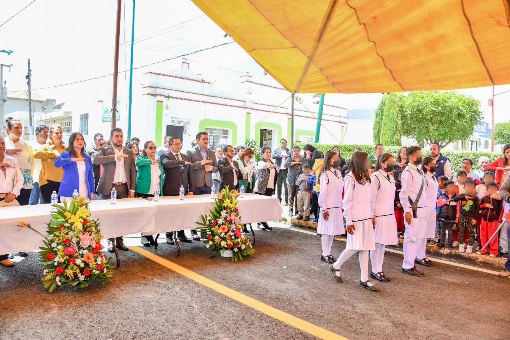 A la ceremonia asistieron instituciones educativas como el Jardín de Niños “Bertha Von Glumer”, la Escuela Primaria “Joaquín Cisneros Molina”, la Telesecundaria “Niños Héroes de Chapultepec”, padres de familia y pobladores de la comunidad.