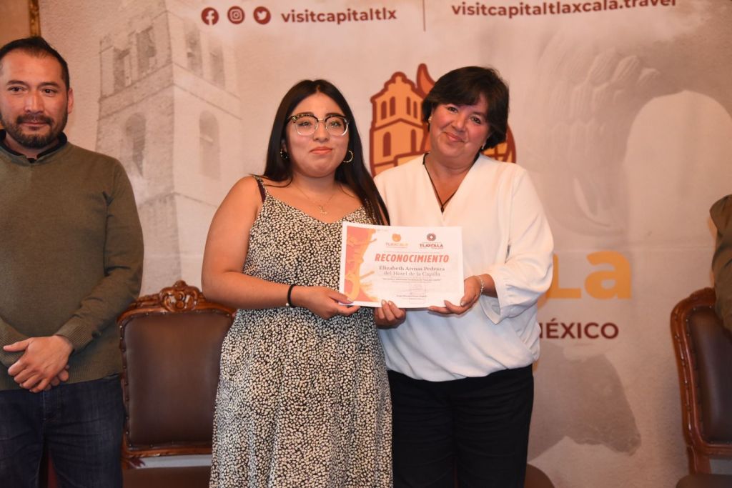Promotores de Tlaxcala Capital fueron reconocidos por la presidenta municipal, Maribel Pérez Arenas, luego de concluir la capacitación en materia de atractivos turísticos y de idioma inglés impartida por el Ayuntamiento de Tlaxcala, con el fin de ofrecer atención de calidad a paseantes.