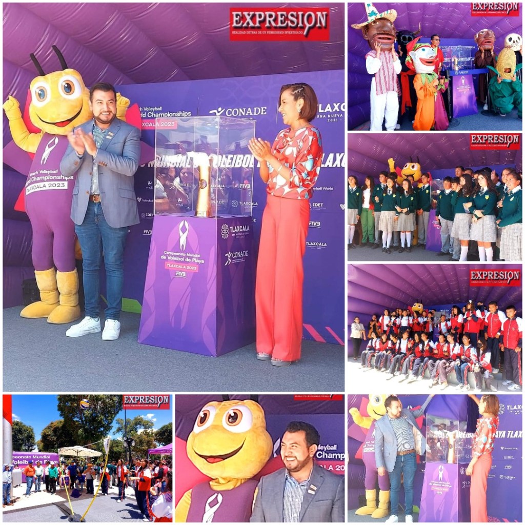 Este día llego a Huamantla Pueblo Mágico el Trophy Tour del Campeonato Mundial de Voleibol Tlaxcala 2023 donde estudiantes y habitantes pudieron convivir con la Mascota Oficial de este Campeonato «Lucy» y sacarse fotos con la copa del mundial.