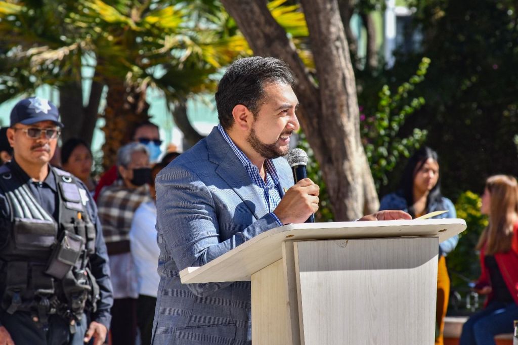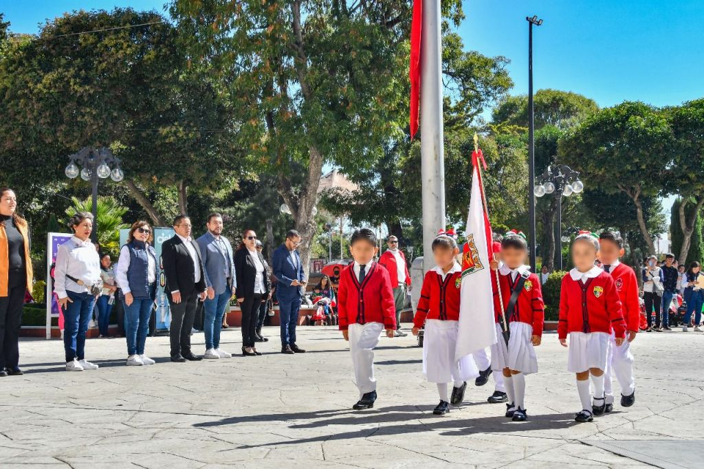 En la explanada de la Presidencia Municipal, el alcalde Santos Cedillo, acompañado de autoridades municipales, rindieron honores a los símbolos patrios donde fue izada la Bandera Nacional a media asta.