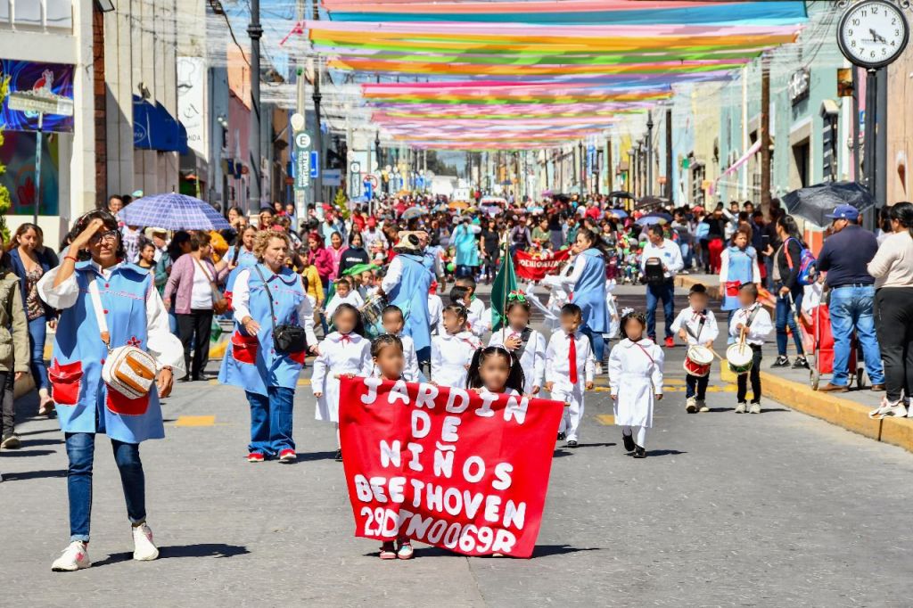 Posterior al acto solemne tuvo lugar el desfile de jardines de niños y estancias infantiles con carritos y triciclos adornados con elementos patrios.