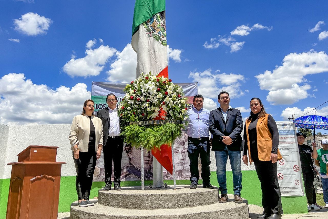 En la explanada de la Presidencia Municipal, el alcalde Santos Cedillo, acompañado de autoridades municipales, rindieron honores a los símbolos patrios donde fue izada la Bandera Nacional a media asta.