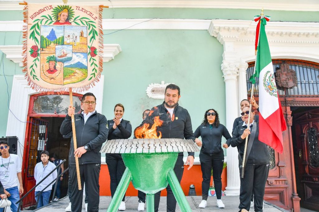 En el domo blanco del Centro Expositor, el alcalde Santos Cedillo, acompañado por integrantes del H. Ayuntamiento, coordinadores de área y presidentes de comunidad, trasladaron el fuego simbólico hasta la explanada de la Presidencia Municipal de Huamantla para ser entregado por la tarde a las autoridades de las 39 comunidades que conforman el municipio.