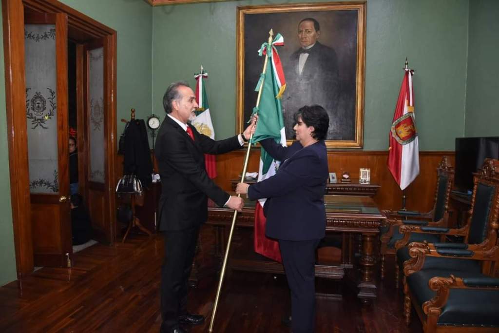 La alcaldesa capitalina, junto con la Síndico, Rosalba Salas Jaramillo, y los directores Juan Ramón Sanabria (Jurídico); Adolfo Xochicale (Obras Publicas); Olaf Hernández (Contraloría); Felipe Minero (Capam), fueron partícipes de este importante acto cívico, conformando la escolta que hizo entrega del lábaro patrio a los elementos de la 23a Zona Militar.