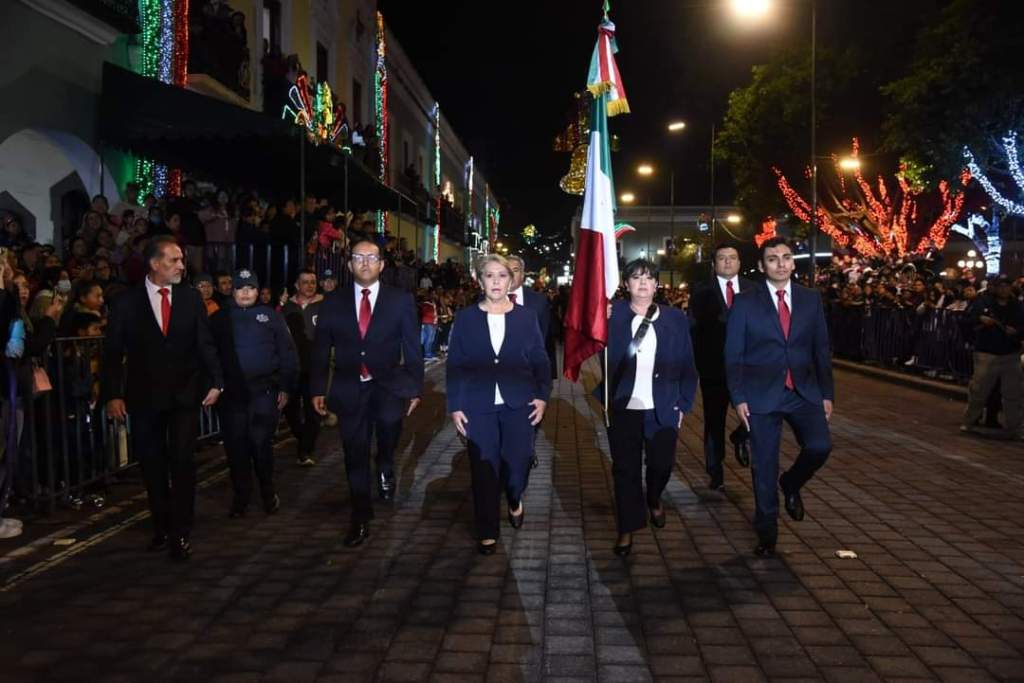 La presidenta municipal de Tlaxcala, Maribel Pérez Arenas, participó en la tradicional ceremonia de “Grito de Independencia” en el Palacio de Gobierno estatal, con motivo del 213 aniversario del comienzo de la lucha independentista.