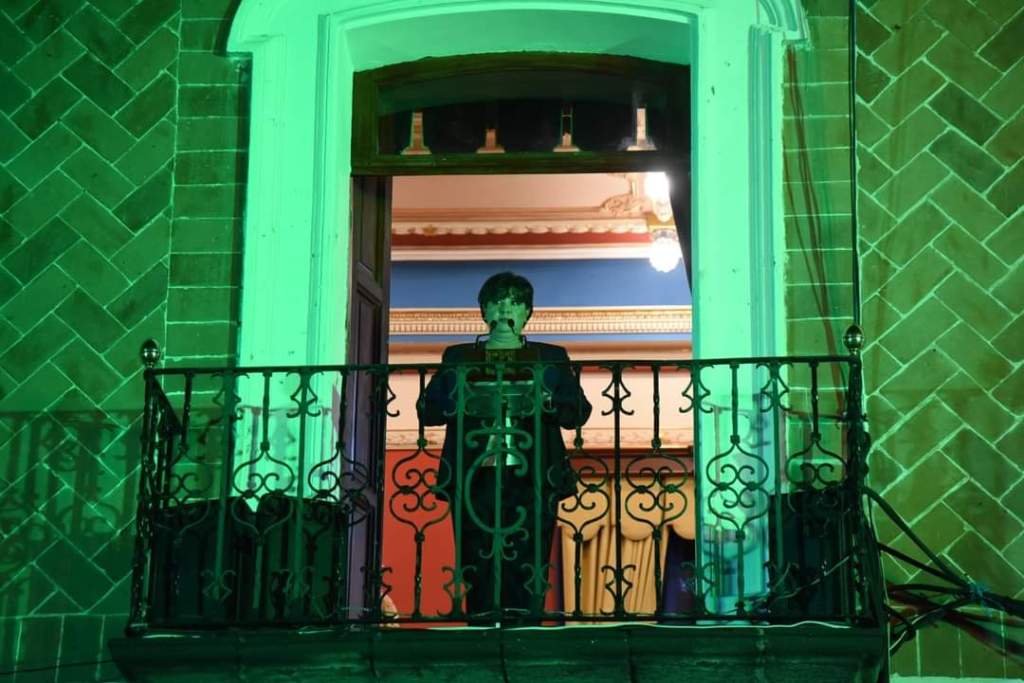 Posteriormente, la presidenta Pérez Arenas, en uno de los balcónes del Palacio de Gobierno, dio lectura al Acta de Independencia, en la cual están sentadas las bases que consumaron esta lucha en 1821.