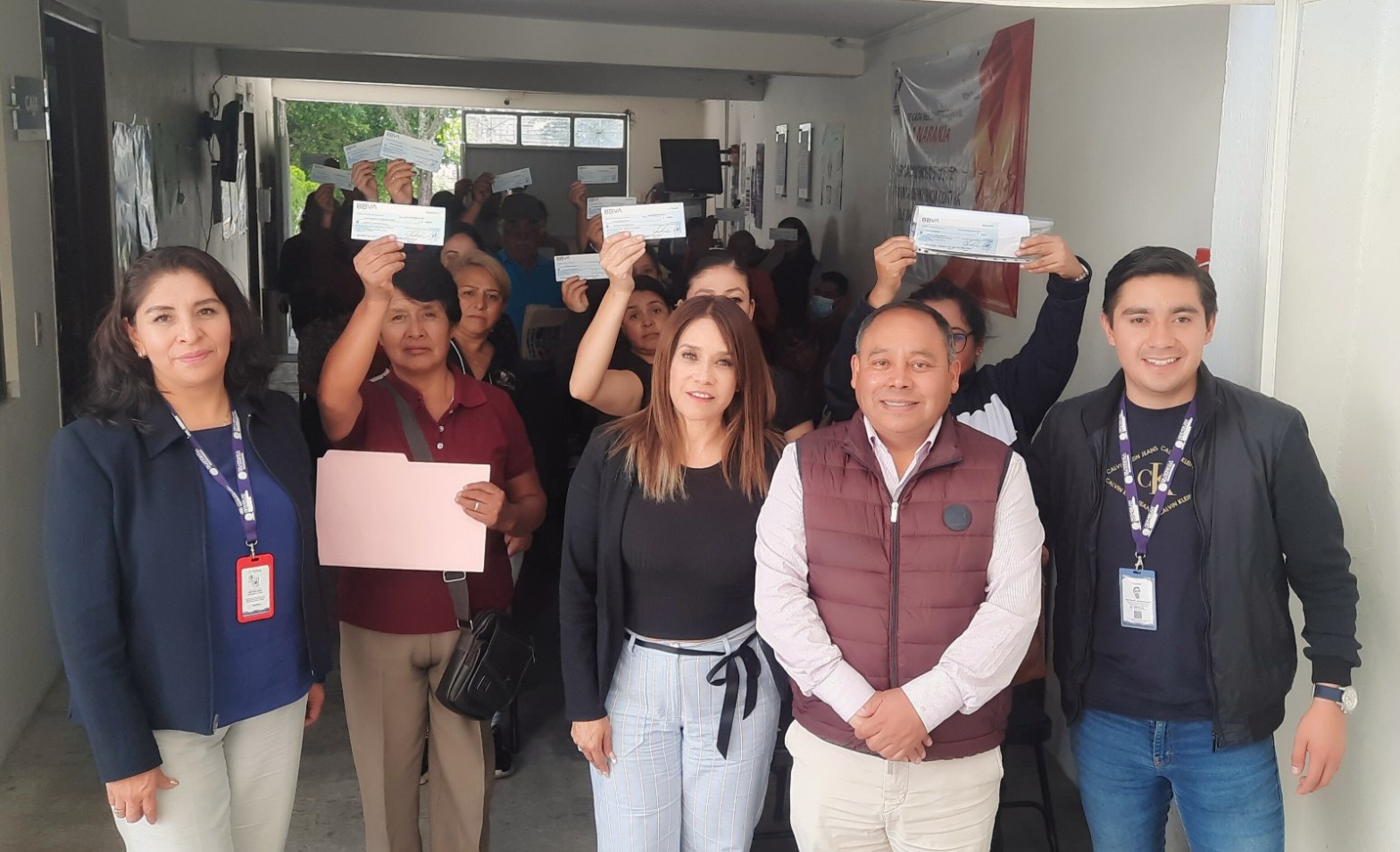 La entrega de cheques se realizó en las instalaciones del Fomtlax y asistieron los jefes de departamento de operación, administración y de operación de crédito, Verónica Flores Cuatepotzo, Liliana Neile González García y Jorge Manuel Martínez Lobatón, respectivamente.