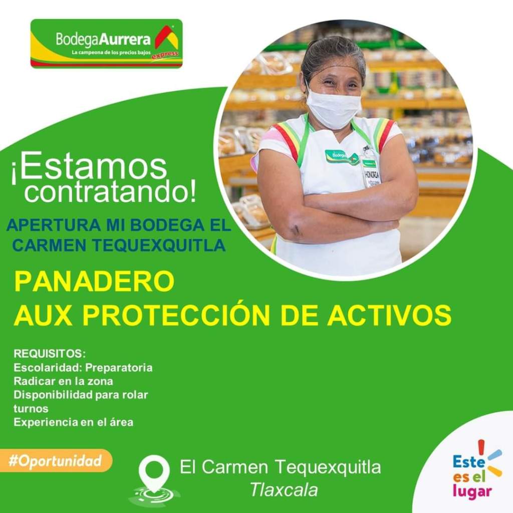 El Gobierno Municipal de El Carmen Tequexquitla te invita a participar en el reclutamiento por parte de #BodegaAurrera, para aperturar la sucursal, se busca: