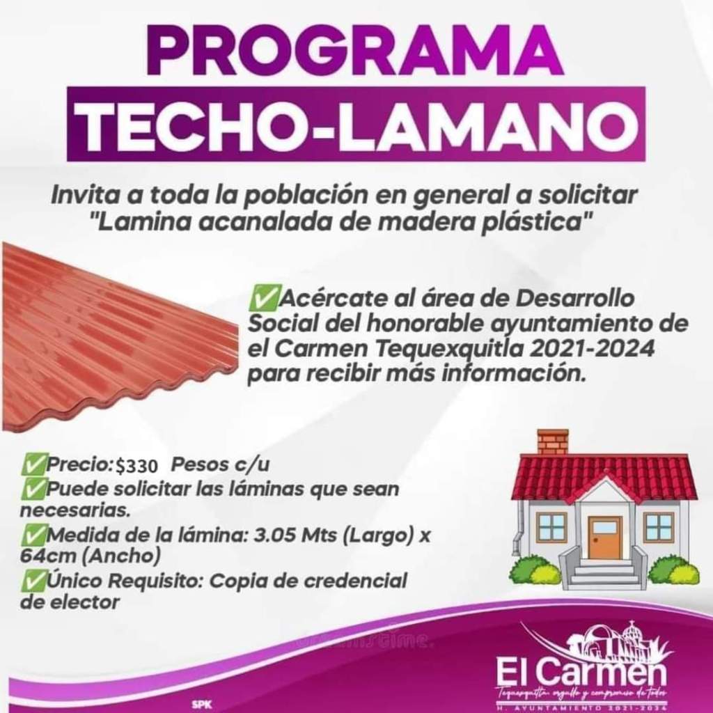 La coordinación de Desarrollo Social del honorable ayuntamiento de el Carmen Tequexquitla 2021-2024, invita a toda la población en general a solicitar los siguientes programas: .🏡"Techo- Lamano" 🏡 🐥 "Apoyo a la economía familiar" 🐥
