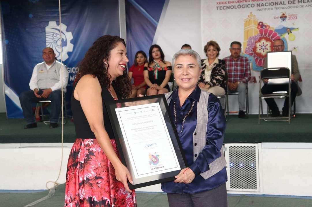 La presidente municipal María Anita Chamorro Badillo agradece la distinción de la directora del Tec NM Campus Apizaco Dra. Yesica Imelda Saavedra Benítez, por la entrega del reconocimiento al municipio de #Yauhquemehcan por su participación en el #ENAC .