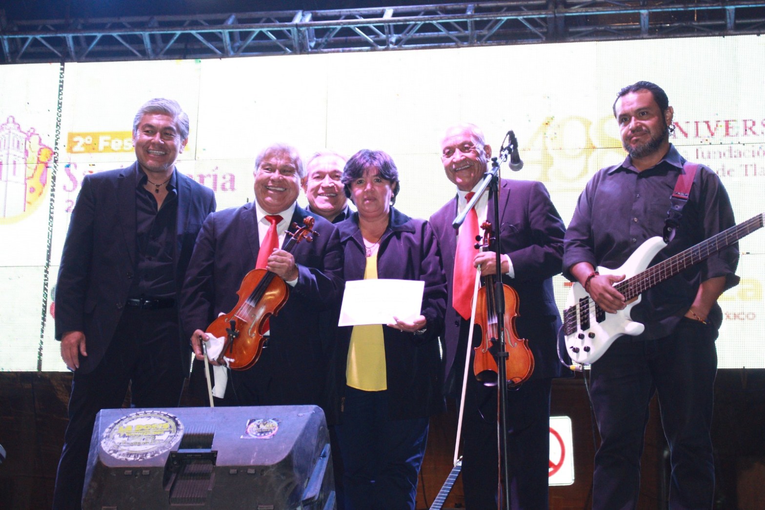 La presidenta municipal, Maribel Pérez Arenas, agradeció la presencia en Tlaxcala Capital de los Violines Internacionales de los Hermanos Aguascalientes y la Big Band Jazz de la BUAP, que se presentaron este domingo en el escenario de la Plaza de la Constitución, en el marco del segundo Festival Santa María.