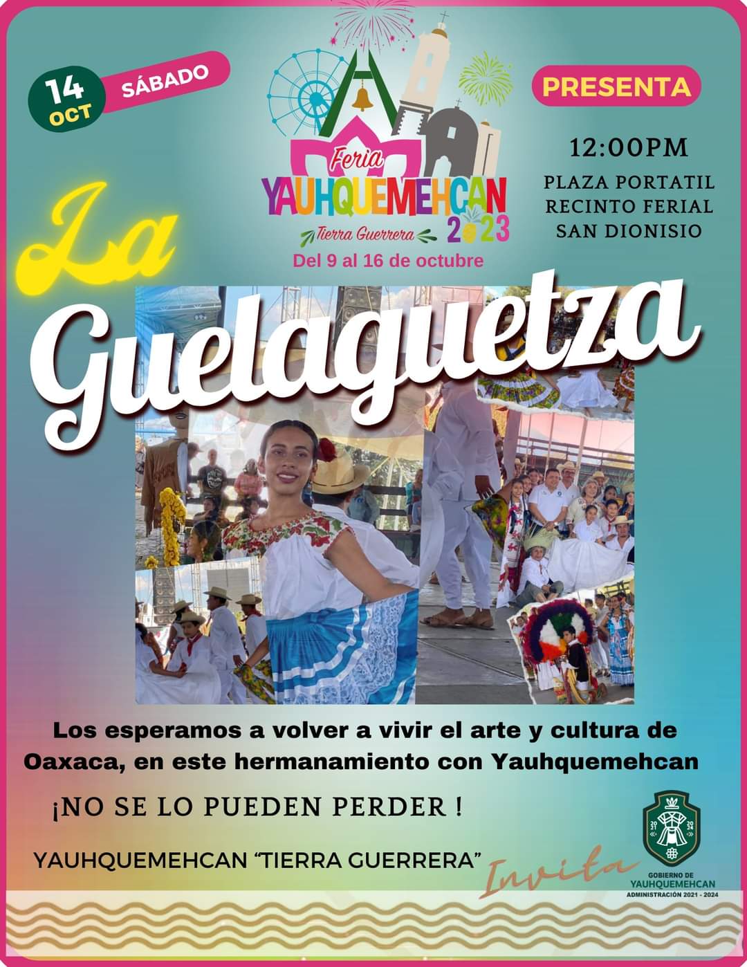 «La Guelaguetza en Yauhquemehcan» 𝗲𝗻 𝗲𝘀𝘁𝗲 𝗵𝗲𝗿𝗺𝗮𝗻𝗮𝗺𝗶𝗲𝗻𝘁𝗼 𝗰𝗼𝗻 𝗲𝗹 𝗺𝘂𝗻𝗶𝗰𝗶𝗽𝗶𝗼 𝗱𝗲 𝗢𝗮𝘅𝗮𝗰𝗮 𝗱𝗲 𝗝𝘂á𝗿𝗲𝘇, 𝗻𝗼 𝘀𝗲 𝗽𝗶𝗲𝗿𝗱𝗮𝗻 𝗲𝘀𝘁𝗲 𝗺𝗮𝗴𝗻𝗼 𝗲𝘃𝗲𝗻𝘁𝗼 𝗲𝗻 𝗲𝗹 𝗺𝗮𝗿𝗰𝗼 𝗱𝗲 𝗹𝗮 Feria Yauhquemehcan 2023.