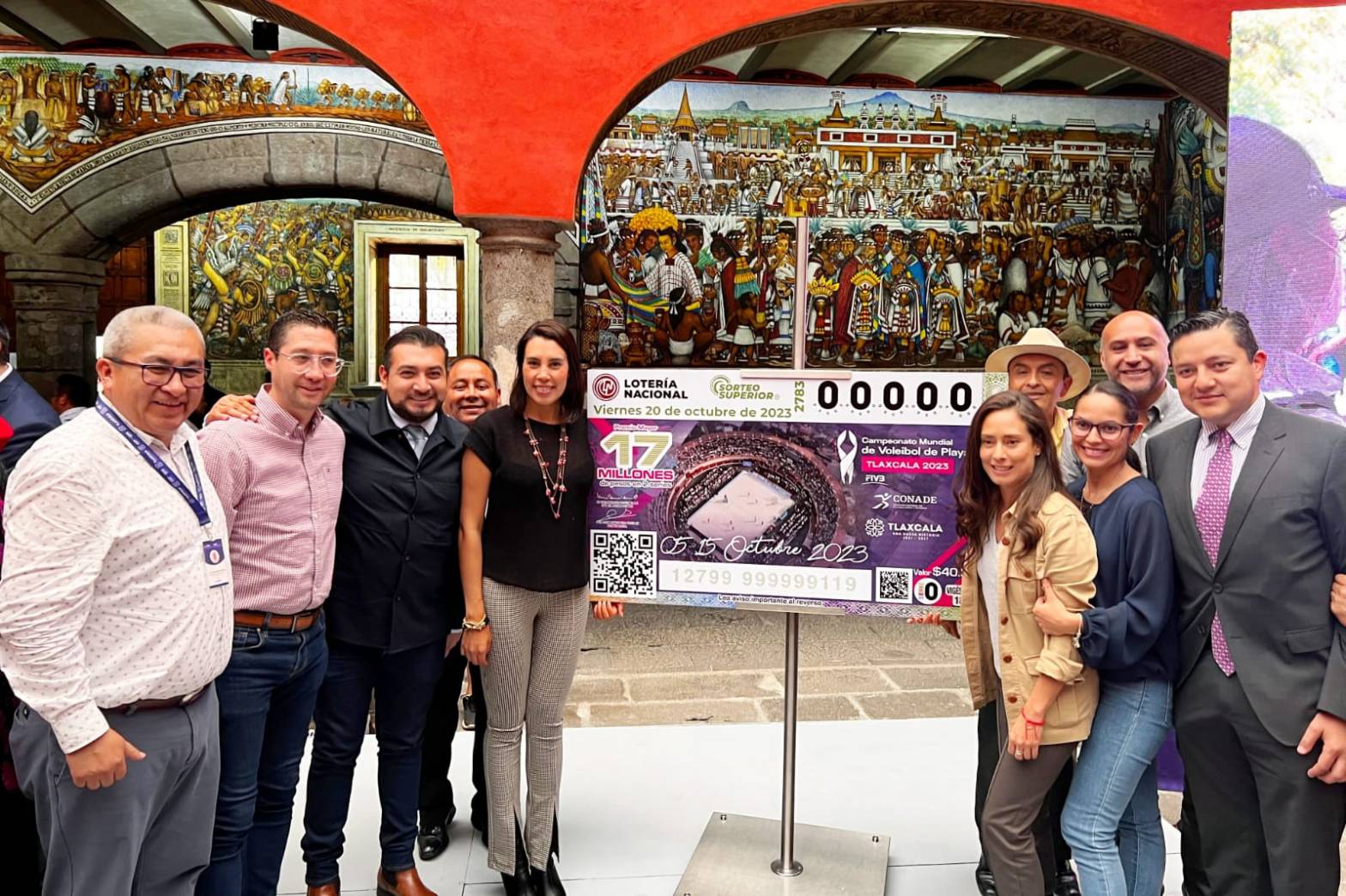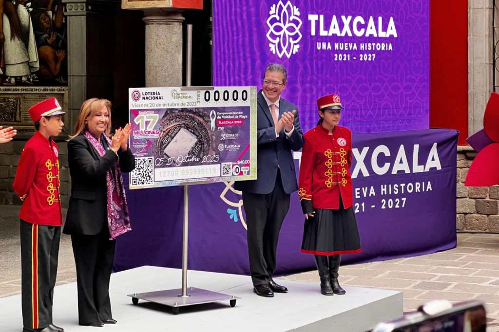 El presidente municipal de Huamantla, Salvador Santos Cedillo, asistió al evento de Develacion del «Cachito de Lotería» alusivo al Campeonato Mundial de Voleibol de Playa Tlaxcala 2023, hecho que quedará plasmado en la historia de nuestro país con la impresión de 60 mil billetes de Lotería