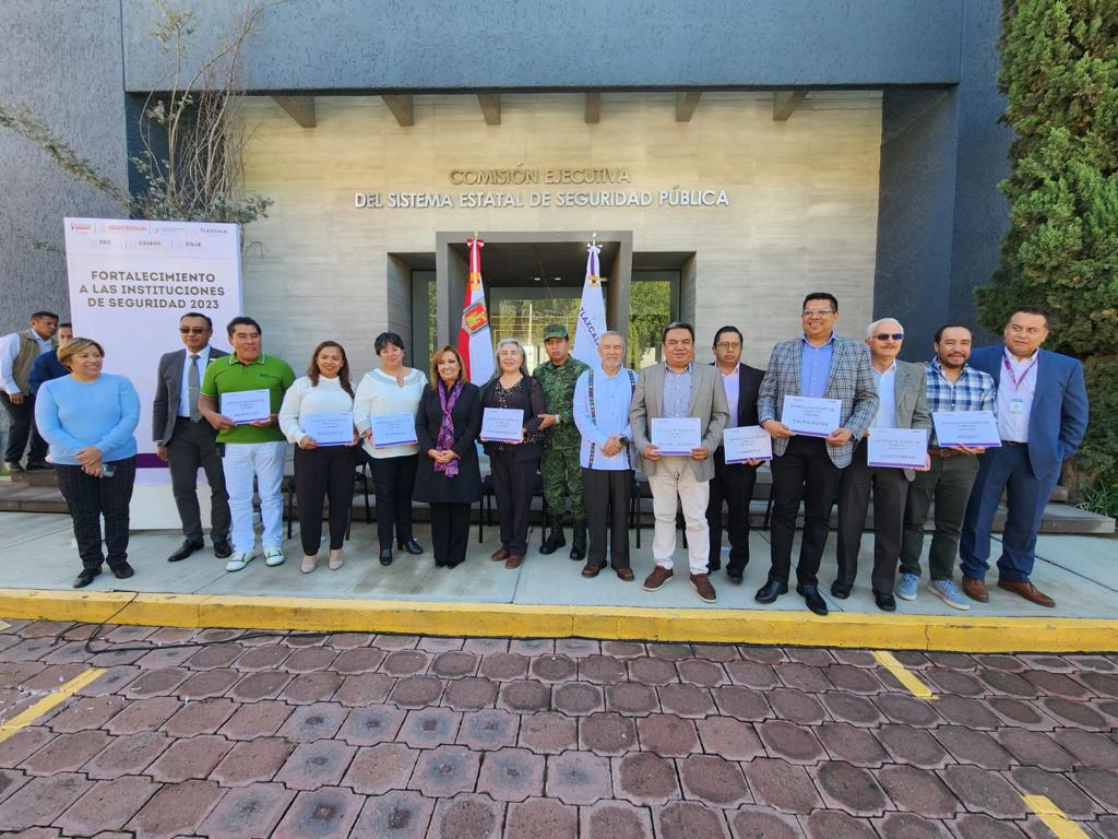 La entrega que forma parte del Fondo para el Fortalecimiento de las Instituciones de Seguridad Pública para el ejercicio fiscal 2023 (FOFISP) estuvo atestiguada por los titulares del Poder Ejecutivo, de la Secretaría de Gobierno, de la CESESP y de la Directora de la policía municipal capitalina, Miriam Zacapantzi Flores.
