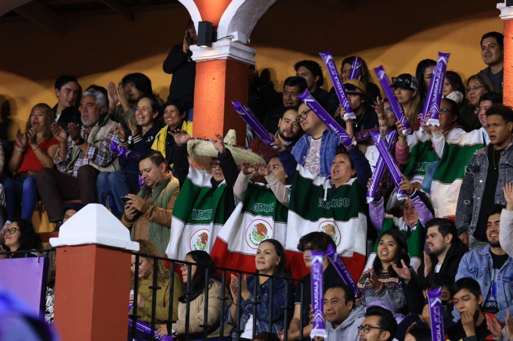 Sin importar los colores ni las banderas, la afición tlaxcalteca vitoreó cada punto y bailó al ritmo de la música que los DJ’s reproducían para animar las jugadas.