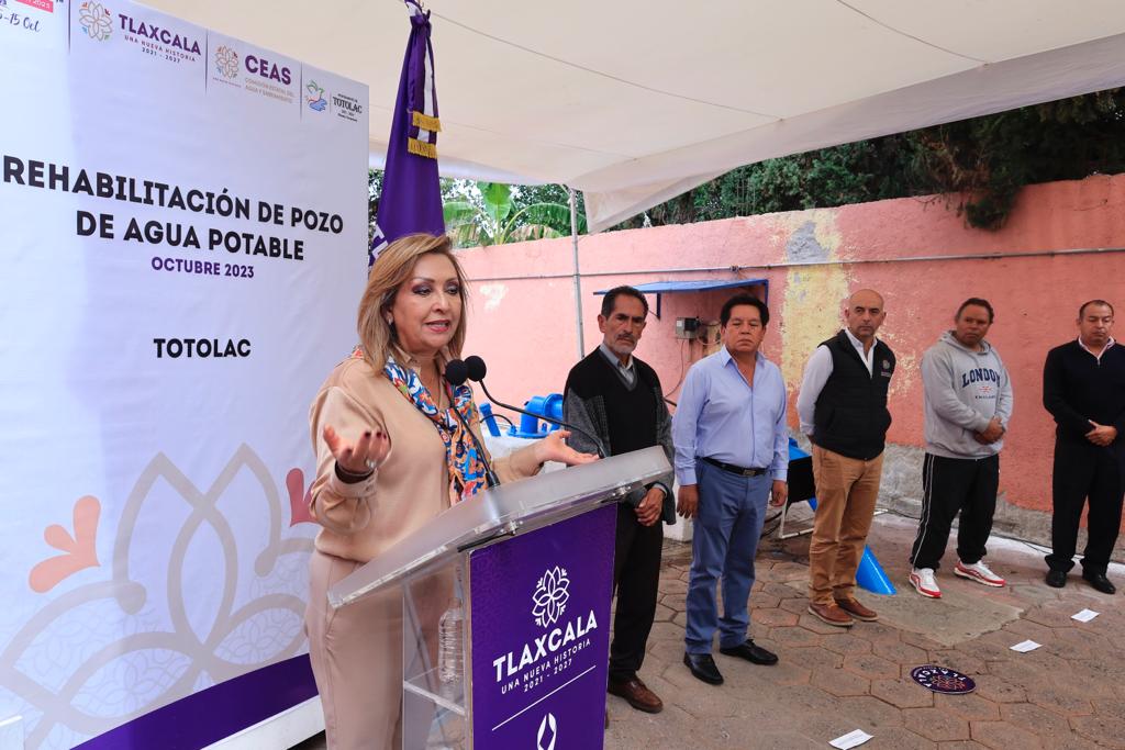 Con una inversión bipartita de 359 mil 710.26 pesos, la gobernadora Lorena Cuéllar Cisneros puso en marcha la rehabilitación del pozo de agua potable en la comunidad de Acxotla del Río, municipio de Totolac con la que se beneficia a 3 mil 855 habitantes de dicha localidad y de San Miguel Tlamahuco.