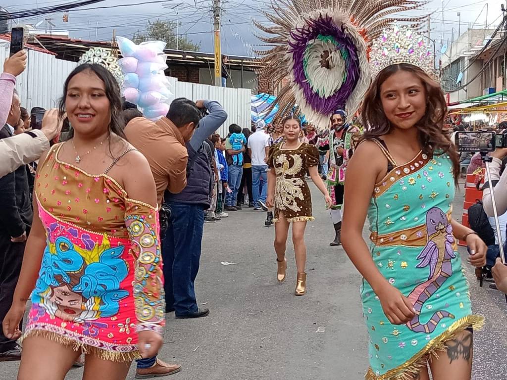 Dio inicio la Feria Yauhquemehcan 2023 con el Desfile colorido lleno de alegria y contingentes de reinas, huehues, escuelas, marching bands, casas comerciales quienes regalaban obsequios a los asistentes.