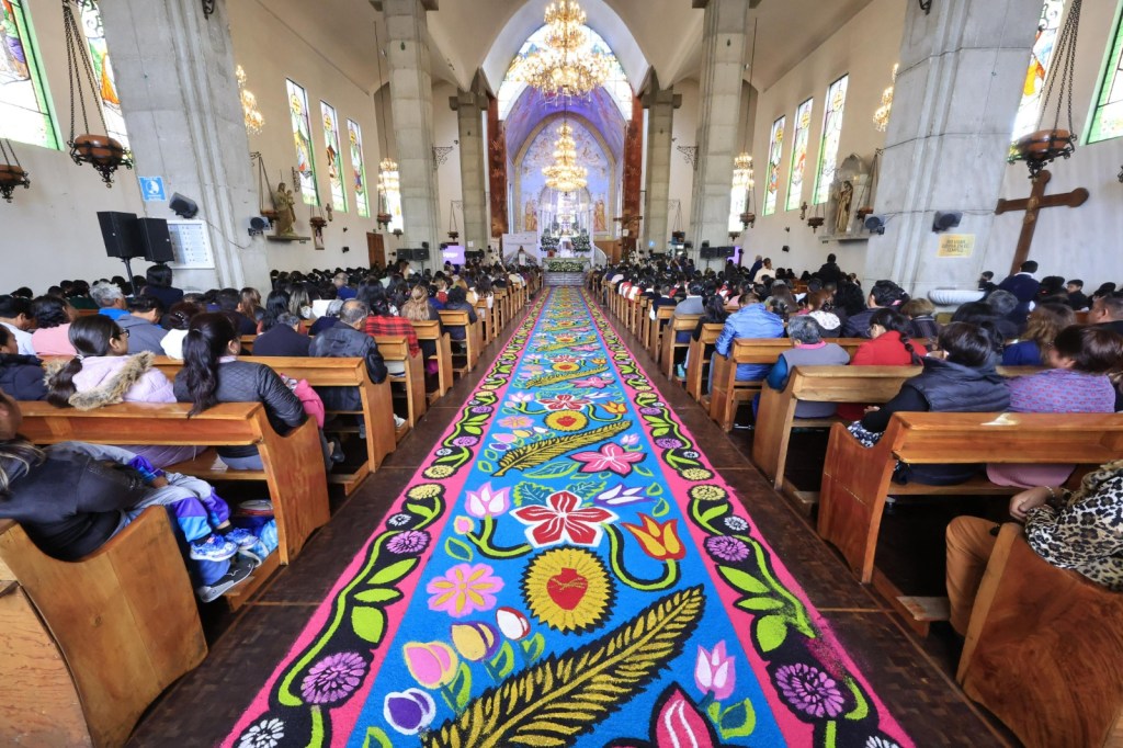 Asimismo, a nombre de la cofradía de bordadoras de Manto y Vestido de la Virgen de la Caridad, Elvira Hernández Torres felicitó a los artesanos que se han dedicado a elaborar alfombras por varios años, pues gracias a su arte Tlaxcala va a sobresalir a nivel nacional e internacional por esta actividad.
