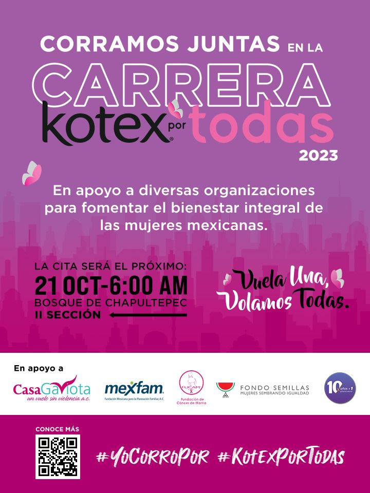 Te invitamos a conocer y participar en la carrera “Kotex Por Todas” un evento que ayuda a apoyar a instituciones especializadas en el desarrollo integral de las mujeres en México.