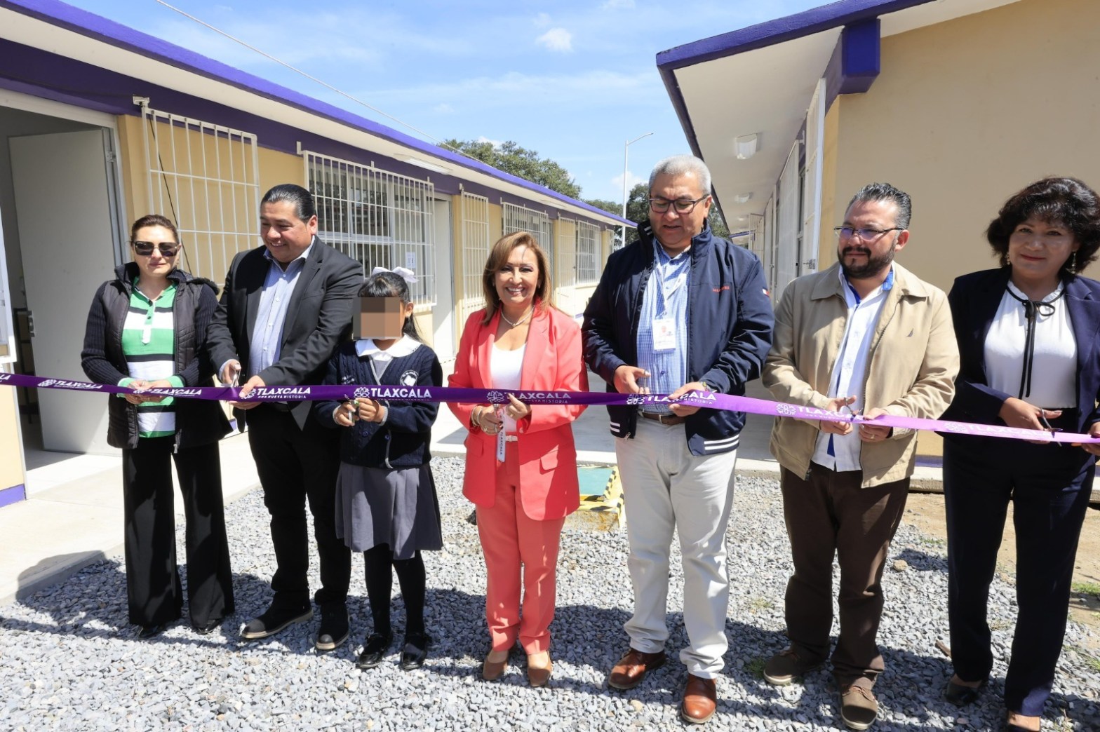 La gobernadora Lorena Cuéllar Cisneros, acompañada de autoridades educativas y municipales, inauguró el nuevo plantel de la Escuela Primaria Estatal “Pioquinto Tlilayatzi”, ubicado en la sección sexta de Santa María Tlacatecpa del municipio de Contla.