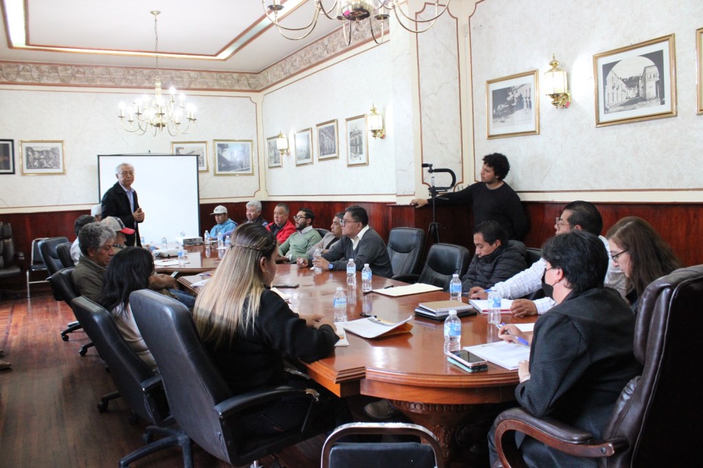 La alcaldesa capitalina, encabezó una reunión de trabajo a la que asistieron, personal de la Secretaría de Agricultura y Desarrollo Rural (SADER) del Gobierno de México; de diversas áreas de Ayuntamiento, así como los presidentes o representantes de los nueve pozos de riego que hay en Tlaxcala Capital.