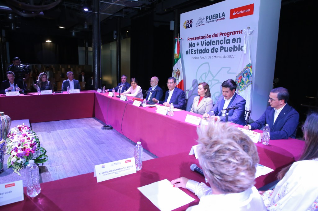 CIUDAD DE PUEBLA, Pue. – Para erradicar la violencia en cualquiera de sus expresiones y garantizar la paz social en Puebla, el gobernador Sergio Salomón y el director general de Banco Santander México, Felipe García Ascencio presentaron el programa “No + Violencia”, que busca formar a la población en la prevención de la violencia mediante capacitaciones y contenidos informativos.