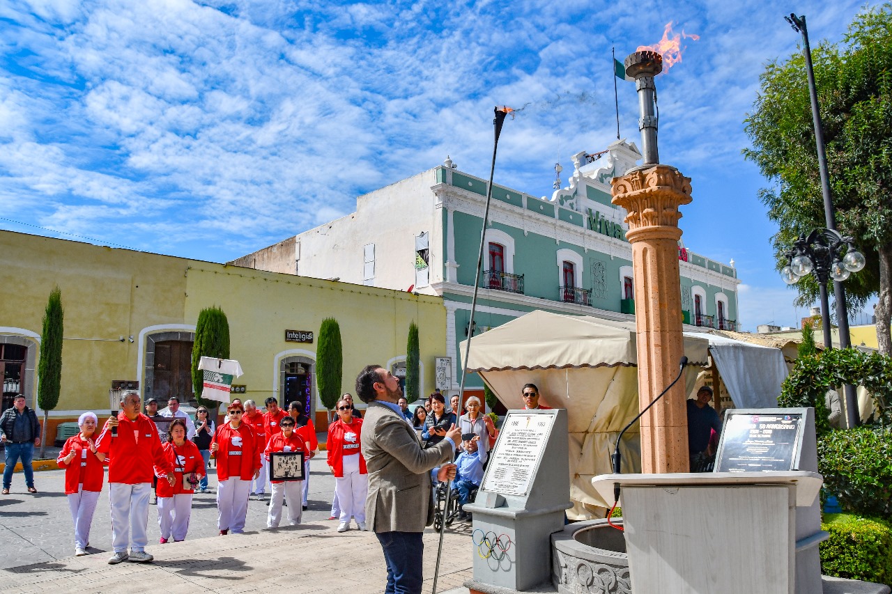 Para recordar este hecho histórico, participantes y familiares partieron la plazuela de la Santa Cruz al Parque Juárez, donde entregaron el fuego al alcalde para el encendido del pebetero como parte de la conmemoración de este significativo suceso.