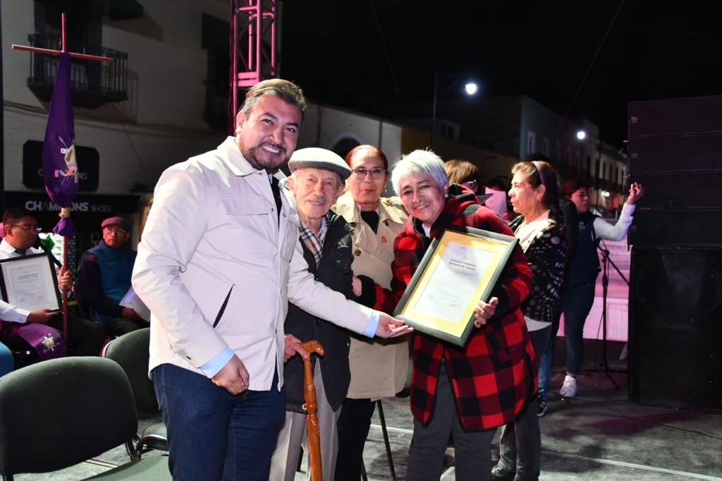 Como parte del acto protocolario, el alcalde Santos Cedillo, entregó las Constancias a los representantes de los grupos de alfombreros, comisiones, cofradías, mayordomías, encargados de los templos, alfombristas, párrocos, vecinos de las calles donde hacen su recorrido las procesiones de la Virgen de la Caridad y el Señor del Convento, así como familias que participan en la organización de las diferentes festividades religiosas.