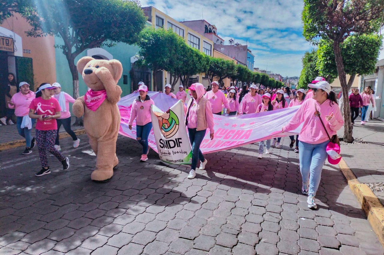 En el marco del mes de la lucha contra el cáncer de mama, este día, personal del Sistema Municipal para el Desarrollo Integral de la Familia (DIF) Huamantla, participó en la Caminata Rosa “Sensibilización sobre el Cáncer de Mama #TlaxcalaPreviene”, que se realizó en la capital el estado.