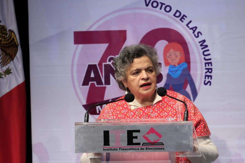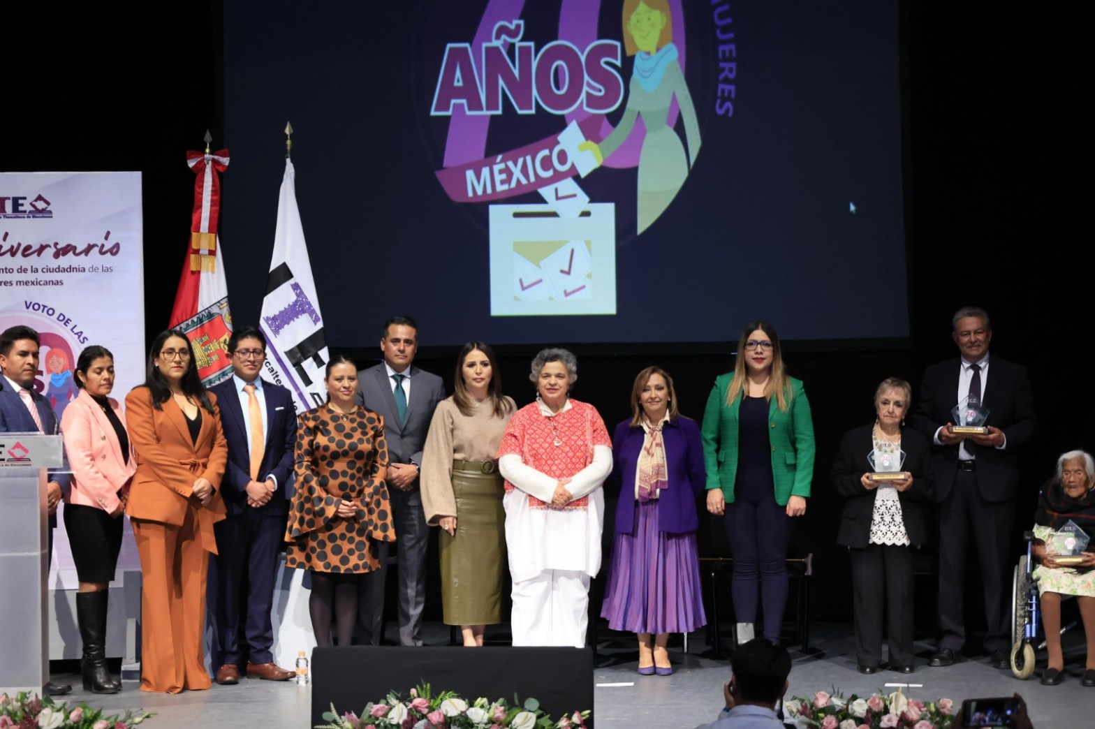 La titular del Ejecutivo local, Lorena Cuéllar Cisneros presidió la ceremonia conmemorativa del 70 aniversario del reconocimiento de la ciudadanía y derecho al voto de las mujeres mexicanas y recibió reconocimiento de las autoridades del Instituto Tlaxcalteca de Elecciones (ITE), como una de las mujeres pionera en cargos de elección popular.