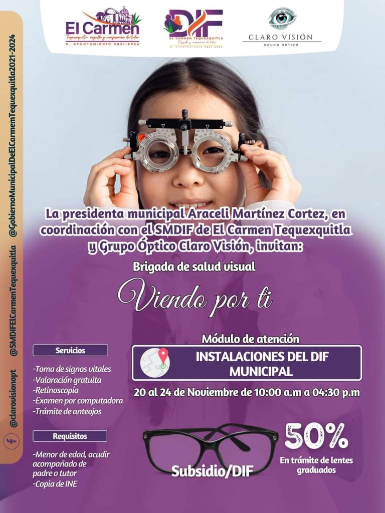 El sistema municipal DIF en coordinación con el Gobierno Municipal que encabeza Araceli Martínez Cortez, te invitan a la brigada de salud visual VIENDO POR TÍ 👓 dirigido a menores de edad.