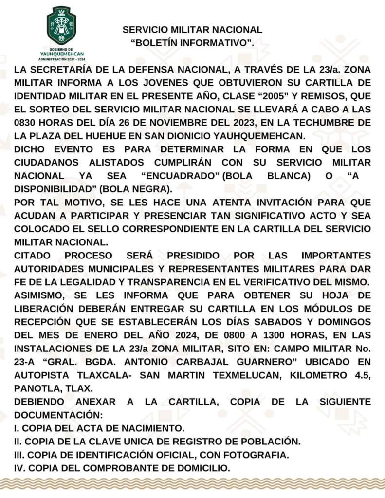 Fecha de Sorteo del Servicio Militar Nacional