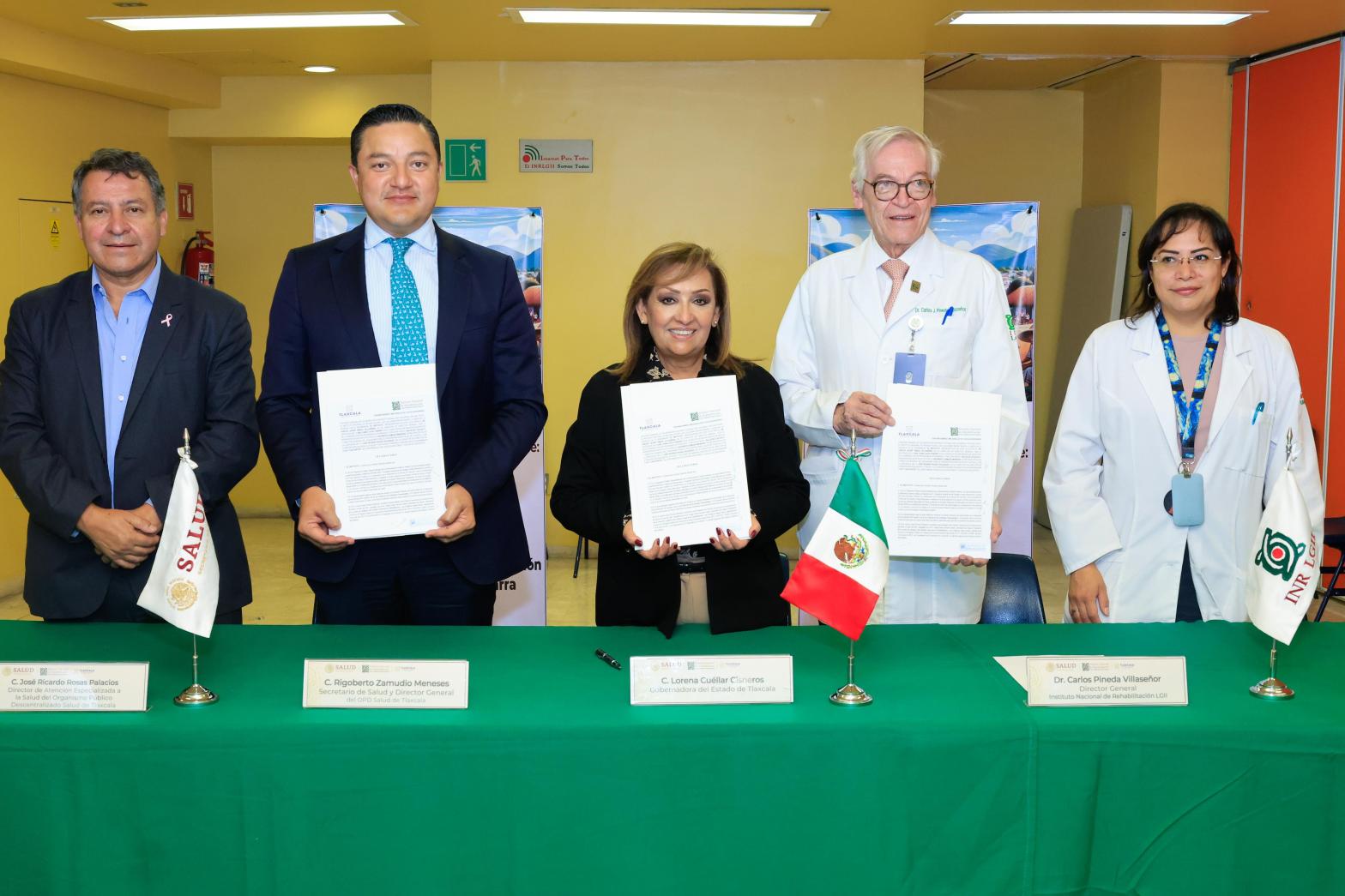 La titular del Ejecutivo local, Lorena Cuéllar Cisneros, firmó un convenio de colaboración con el Instituto Nacional de Rehabilitación (INR), en coordinación con el Sector Salud, para fortalecer la atención médica de alta especialidad en favor de los tlaxcaltecas, específicamente para quienes sufren lesiones por quemaduras.