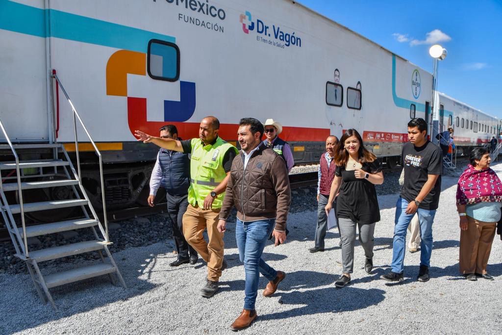 Acompañado de autoridades estatales le informaron que el “Tren de la Salud” atiende a 500 personas diariamente con consultas de medicina general y de especialidades sin costo alguno.