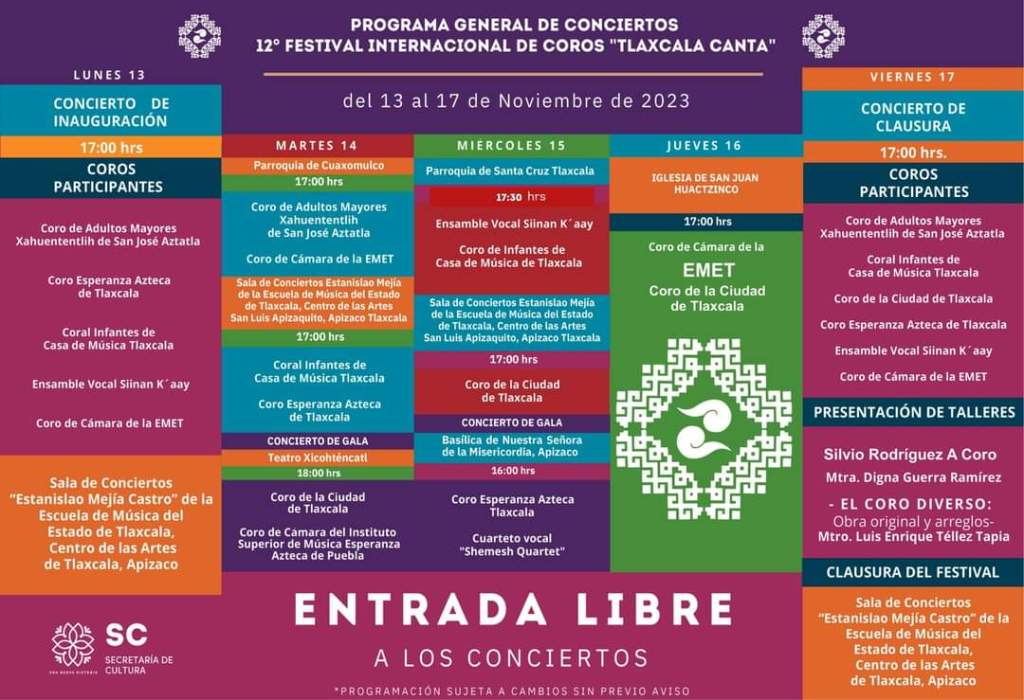 Este martes, nuestro Coro de la Ciudad de Tlaxcala, participa en este festival internacional de coros que organiza la Secretaria Secretaría de Cultura Tlaxcala
