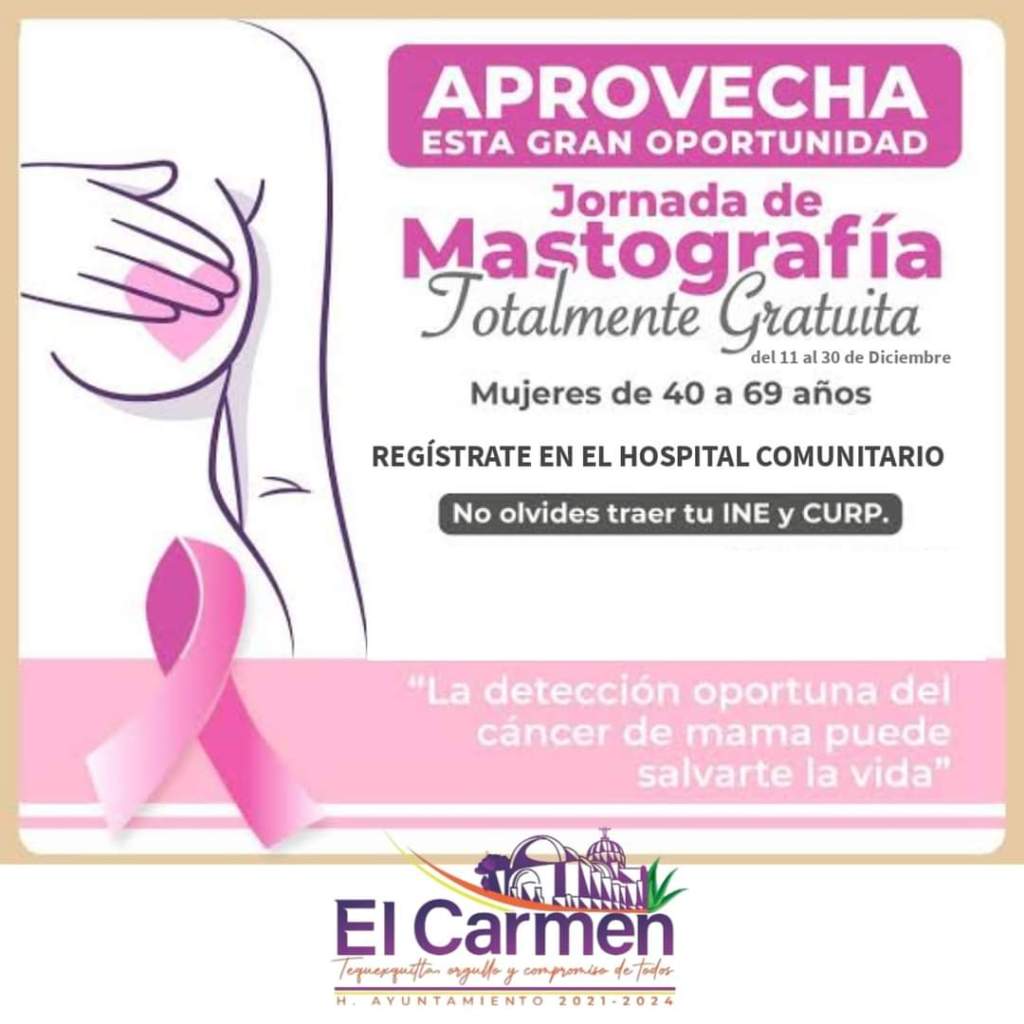 El Gobierno Municipal en coordinación con la Regiduría de Salud Publica te comunica que ya esta abierto el registro de la Jornada de Mastografias que se llevará a cabo del 11 al 30 de diciembre.
