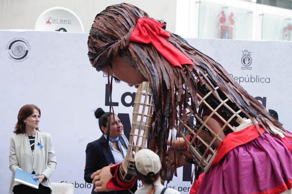 Al recibir a la pequeña Amal, una marioneta que mide tres metros y medio de altura, y que representa una niña siria refugiada de 10 años, la senadora por Tlaxcala vibró de emoción y nostalgia con el discurso que pronunció y subrayó: