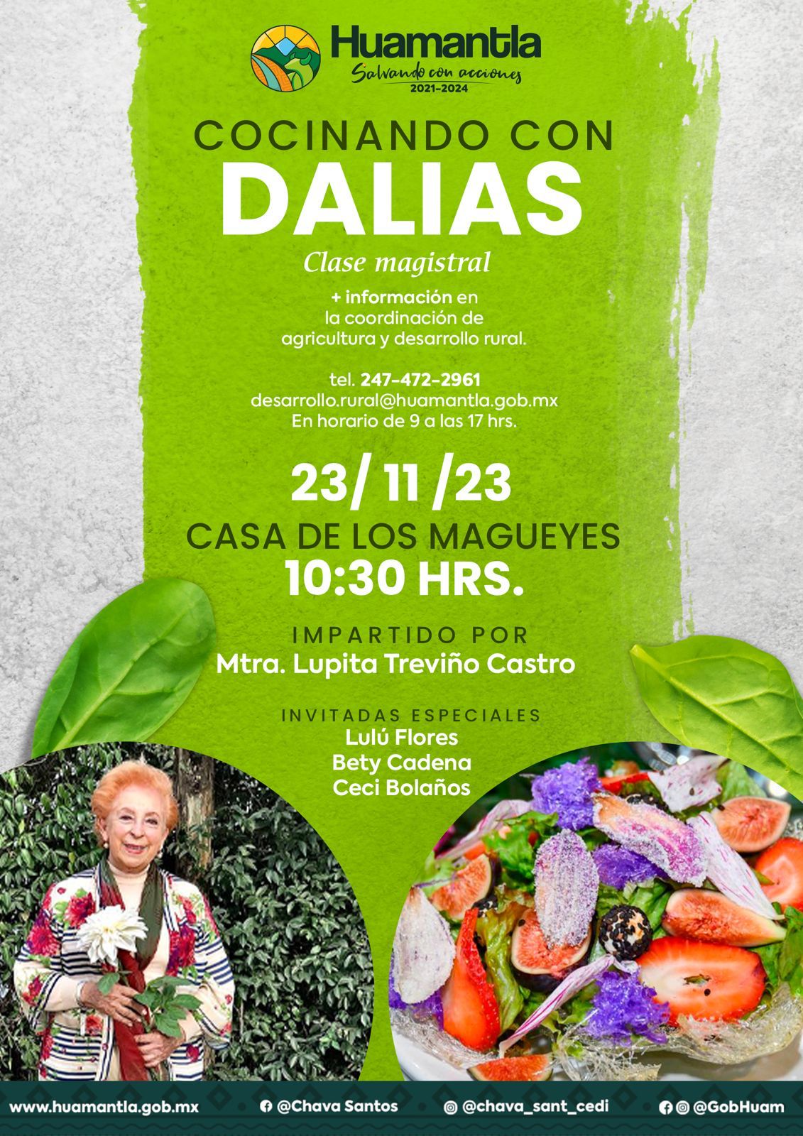 El H. Ayuntamiento de Huamantla, que encabeza Salvador Santos Cedillo, a través de la Coordinación de Agricultura, extiende una cordial invitación a la Clase Magistral «Cocinando con Dalias”, programada para el próximo jueves 23 de noviembre a las 10:30 horas.