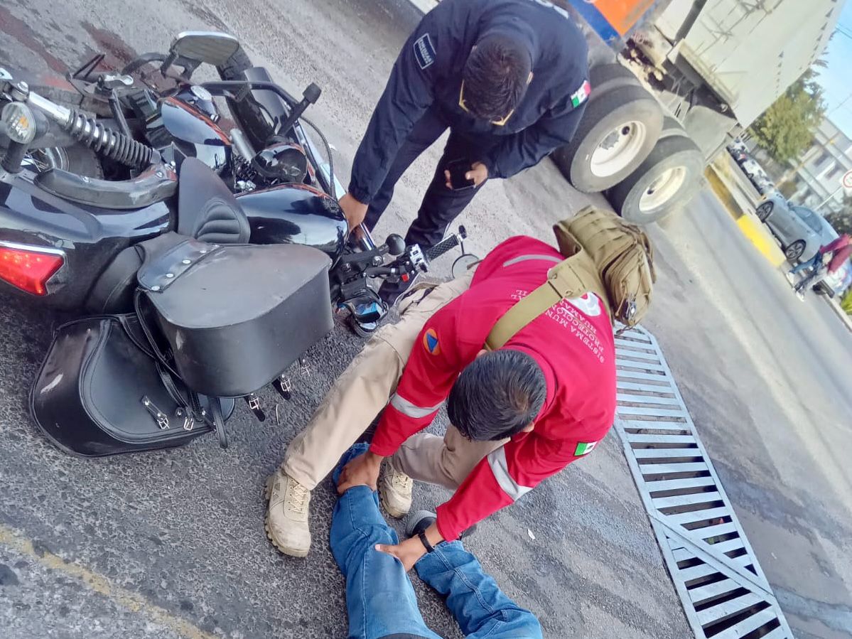 Personal de la Coordinación de Protección Civil de Huamantla, brindaron apoyo a un motociclista que minutos antes había sufrido un accidente sobre el bulevar Luis Donaldo Colosio, en la cabecera municipal.