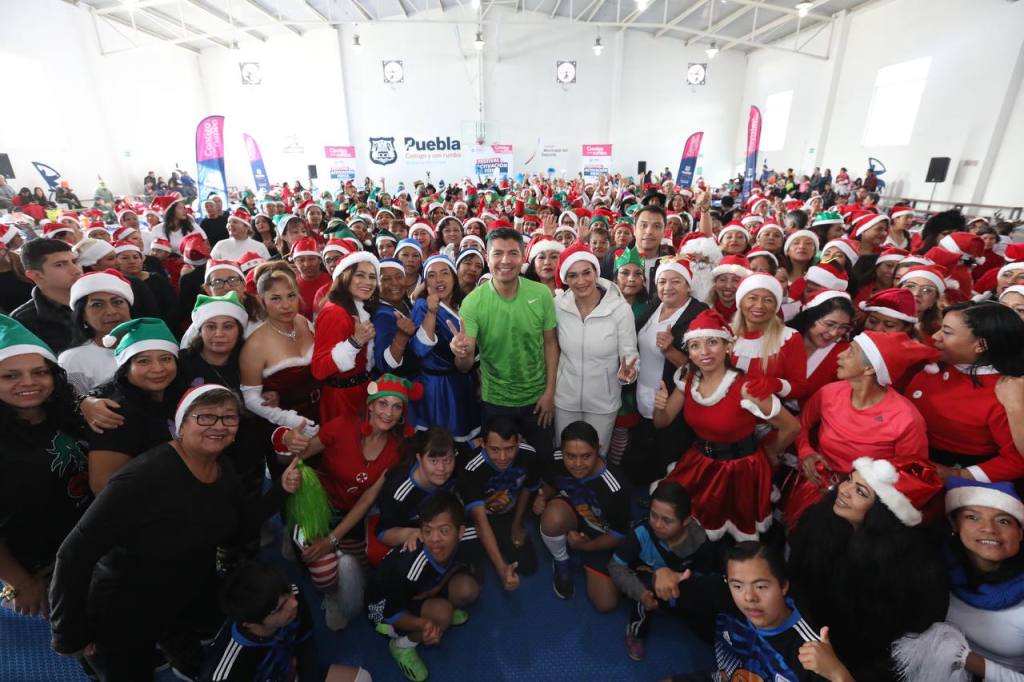 Más de 650 mujeres y hombres que forman parte del programa de activación física musicalizada del Ayuntamiento de Puebla se sumaron al festival navideño de baile, música y fitness que encabezó Eduardo Rivera Pérez, Alcalde de la Ciudad, junto con Liliana Ortiz Pérez, Presidenta Honoraria del Sistema Municipal DIF, en el Gimnasio Puebla Sur.