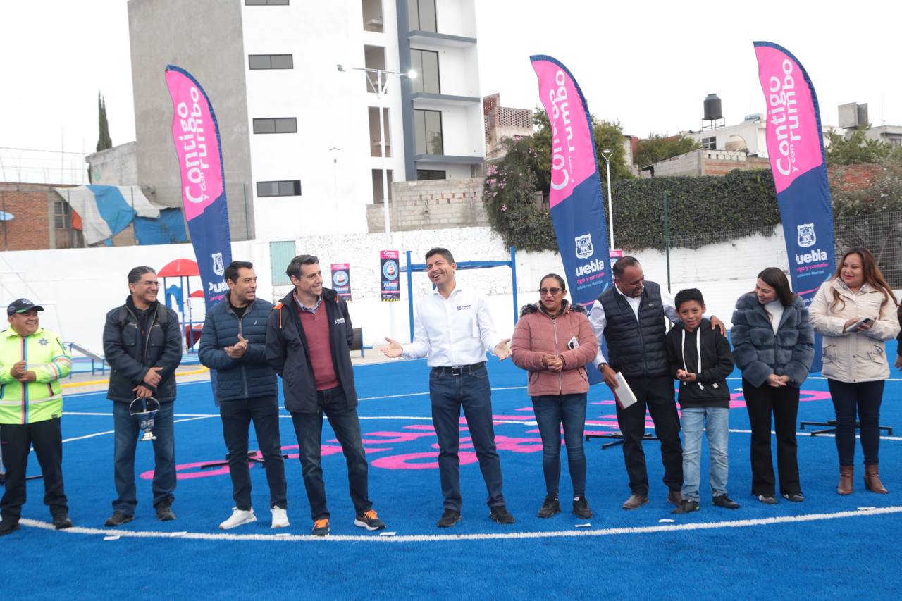 Fue con una inversión superior a los ocho millones de pesos que la administración de Eduardo Rivera Pérez, Presidente Municipal, recuperó este sitio para que cada niña, niño y joven tenga un lugar seguro, accesible y bonito en donde hacer deporte, destacó el Alcalde en su mensaje.