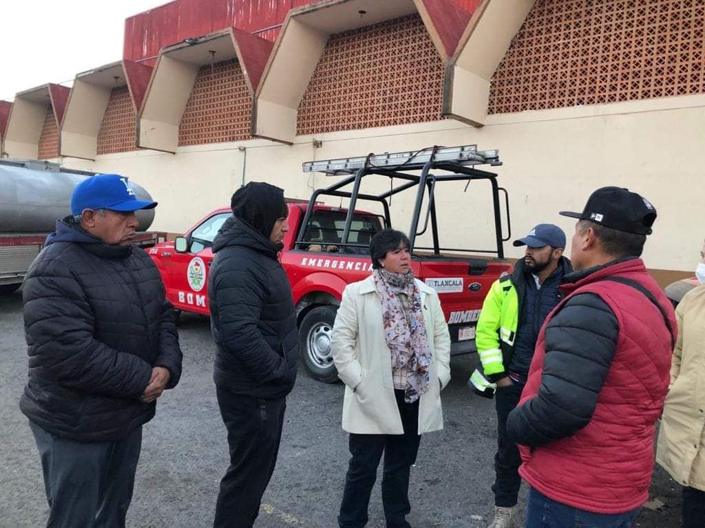 La presidenta municipal de Tlaxcala Maribel Pérez Arenas acudió al lugar y diálogo con los locatarios del mercado Emilio Sánchez Piedras, además de que giró las instrucciones al personal del Ayuntamiento para que se realicen las revisiones correspondientes.