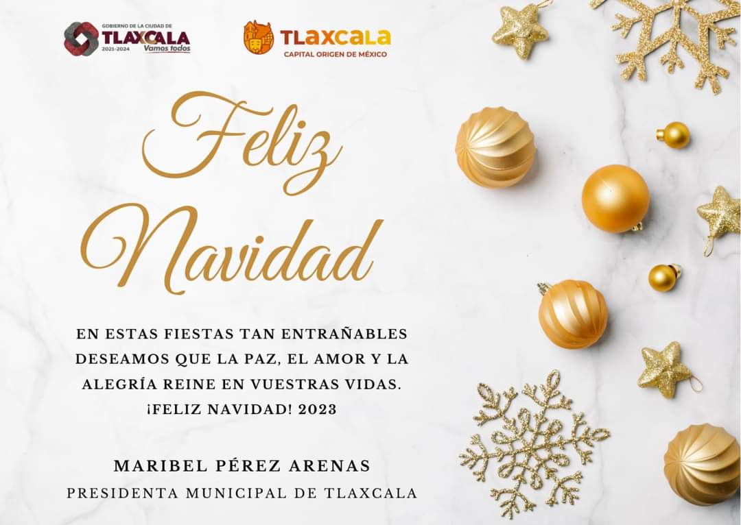 En estas fechas tan especiales la presidenta municipal de Tlaxcala, Maribel Pérez Arenas y quiénes colaboramos en el Ayuntamiento capitalino, les enviamos a todos los capitalinos y tlaxcaltecas, un abrazo 🫂 con motivo de la Navidad 2023.