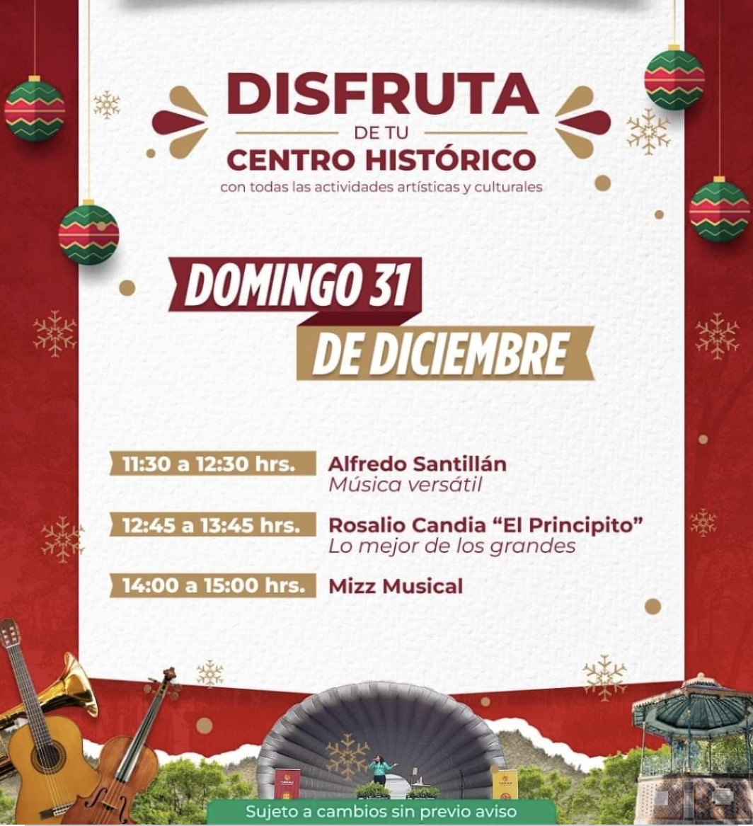 El 2023 se termina y en Tlaxcala Capital, te esperamos con las actividades artísticas y Culturales y disfrutes del Centro Histórico, donde además tenemos el pabellón artesanal que estará tambien colocado el lunes 1 de enero y el mercado de artesanos en la calle Xicohténcatl (atrás de la presidencia municipal y el portal grande)